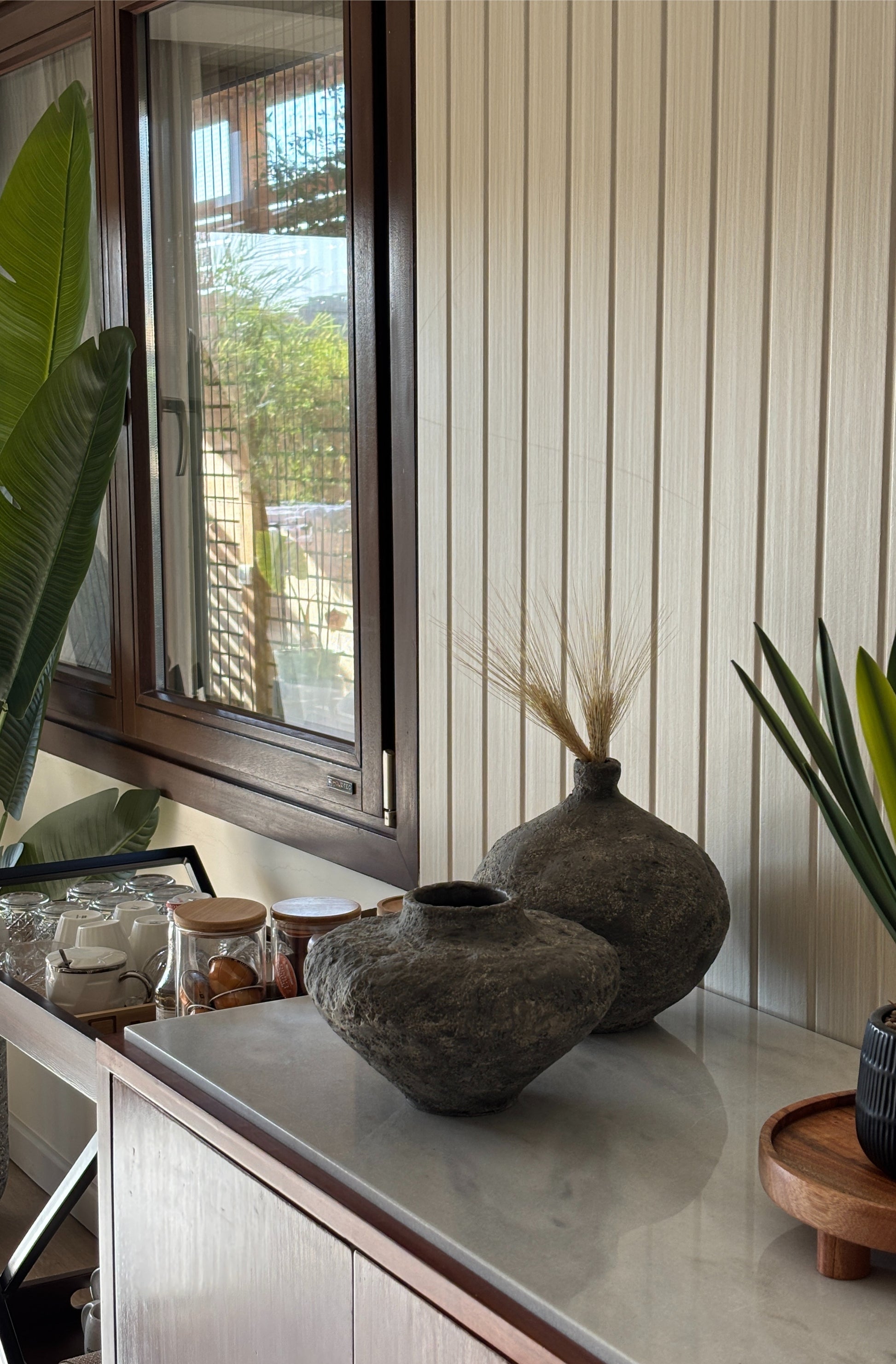 Bring timeless elegance and earthy charm to your space with Rustic Harmony. Handcrafted and finished in a raw, stone-textured look, this piece celebrates organic imperfection and grounded beauty. Available in both a round and flattened form, each variation offers a distinct sculptural presence while maintaining the same serene, natural appeal.